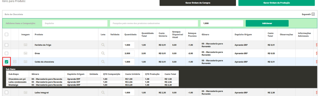 Nosso ERP em Nuvem também possibilita criar subordens de produção para produtos que, além de acabados, são usados como matéria-prima em outros itens.