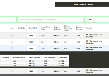 Com ele, você pode cadastrar produtos compostos, especificando os materiais e subprodutos utilizados. Após a finalização da Ordem de Produção, o sistema realiza automaticamente a baixa de matérias-primas no estoque e registra a entrada dos itens finalizados.